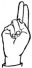 На ћирилици написано КОСТАДИН ПЕЈЧИНОВИЋ састоји се из 18 слова [?]. Исписано ћириличном једноручном азбуком за глувонеме: